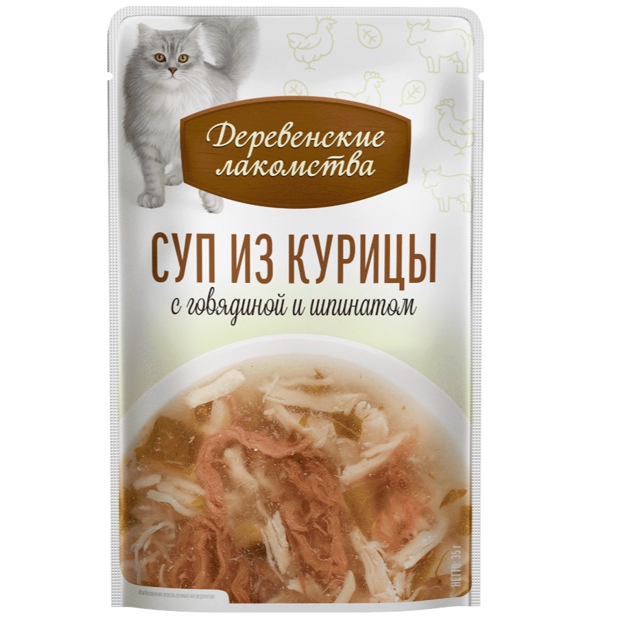 Деревенские лакомства для кошек 4*35г суп Курица/говядина