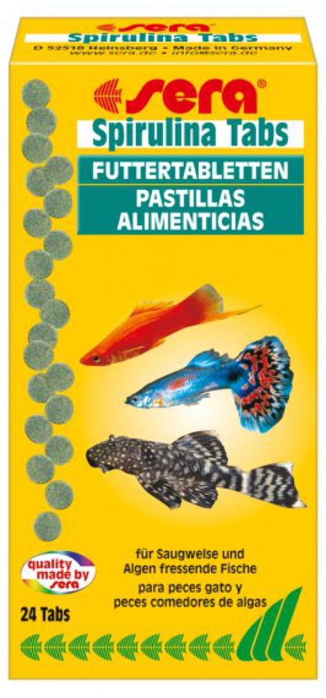 Таблетированный корм высшего качества. В состав SERA спирулина табс включены водоросли спирулина (20%), а также тщательно подобранные ингредиенты растительного происхождения, такие как планктон, морские водоросли, шпинат и ценные травы.