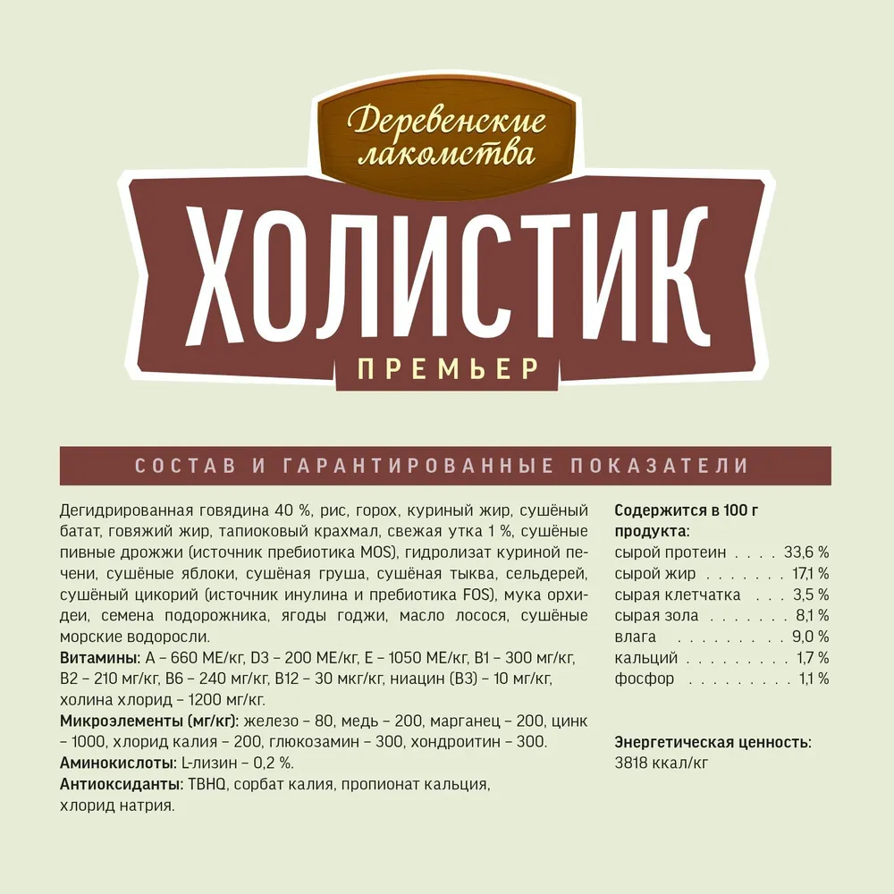 | Деревенские лакомства Холистик Премьер, д/соб. сред. и круп.«Говядина с рисом», 2кг |