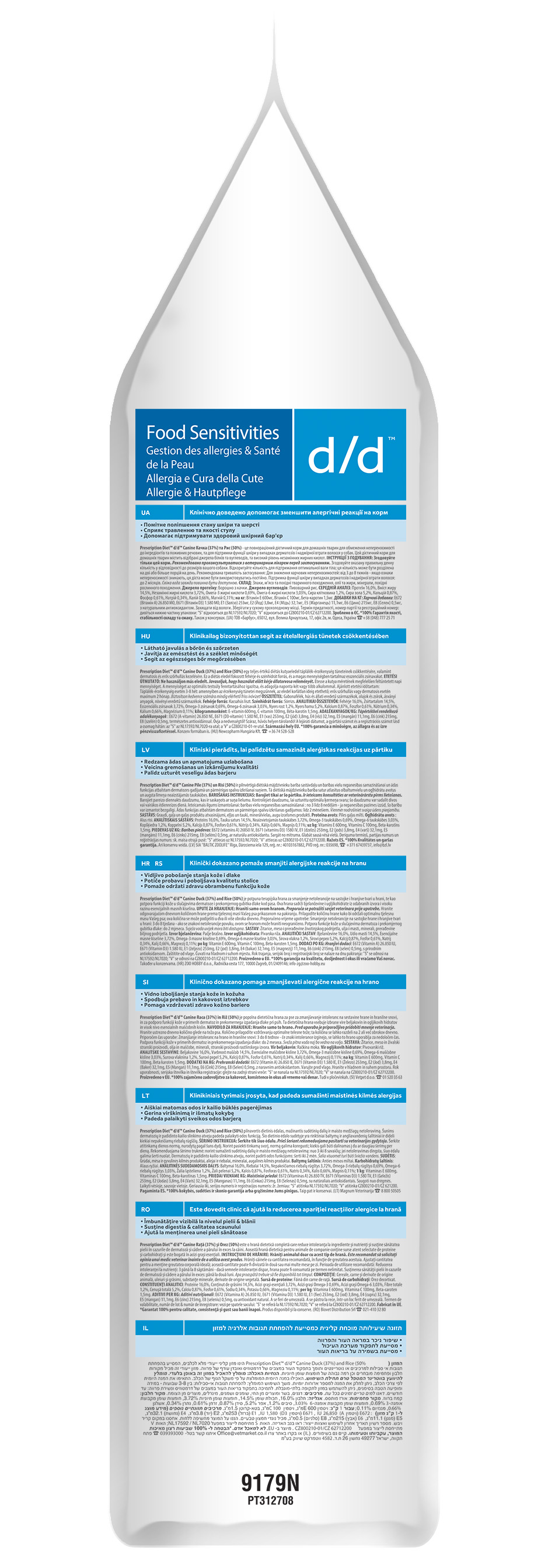 Хиллс для собак 12кг Диета D/D пищевая аллергия Утка с рисом