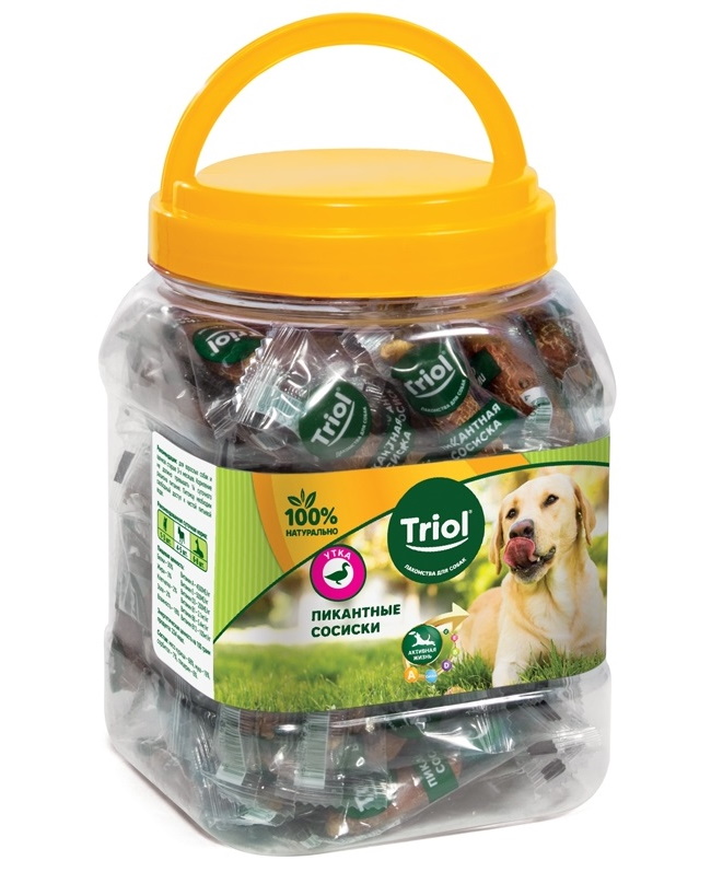 Пикантные сосиски из утки – это незаменимое лакомство для активного отдыха с вашим любимцем, которое подарит заряд бодрости и энергии благодаря повышенному содержанию витаминов B1, B6, B12 и L-карнитина. Сосиски расфасованы в пластиковые банки, при этом каждая сосиска упакована в индивидуальный пакетик со штрихкодом и всей необходимой информацией о продукте. Банку с эргономичной ручкой удобно хранить и легко транспортировать.