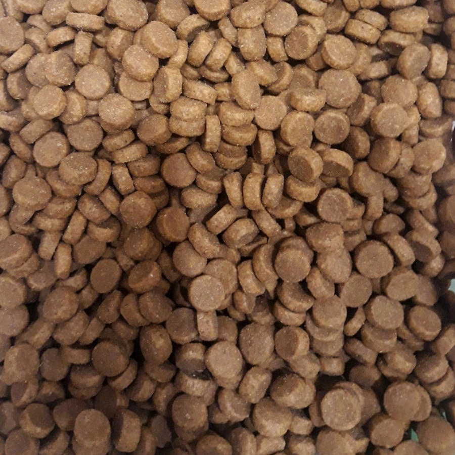 Размер гранул подобран таким образом, чтобы он подходил для любых собак (шарики не слишком мелкие и не очень крупные). Совсем небольшим или пожилым питомцам можно размочить гранулы в воде.