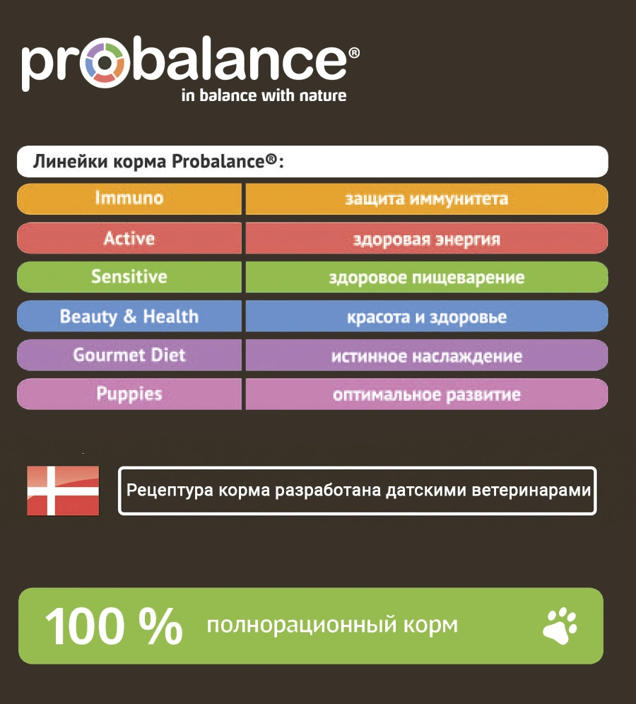 Probalance "Hypoallergenic" - сухой корм премиум класса для собак с чувствительным пищеварением и склонностью к аллергии. Полнорационный натуральный состав подходит всем породам для ежедневного питания.